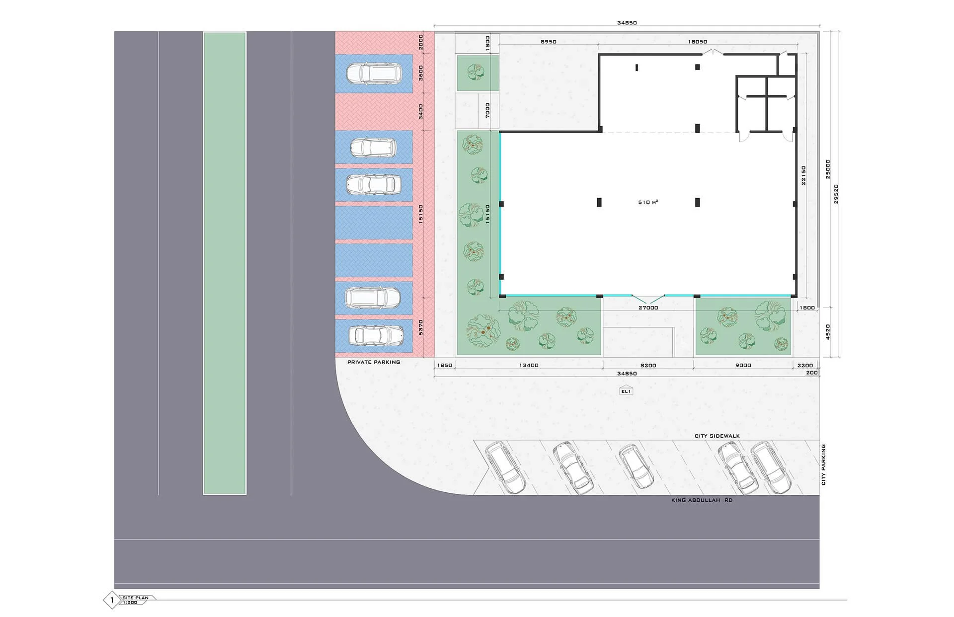 The location of the business center makes the prospective foot traffic even more promising. The building is situated on King Abdullah Road, in a busy neighborhood with intense cultural and social life. Next to the building, there are several restaurants, cafes, a bookstore, a beauty shop, a boutique hotel, and even a theme park. Also, it is just a 10-minute drive from such popular areas for walking as King Abdullah Environmental Park, King Fahad District's Park, and King Faisal University Pedestrian Walkway. At the same distance, there are two sports cities, a stadium, a sports club, and a sports complex.